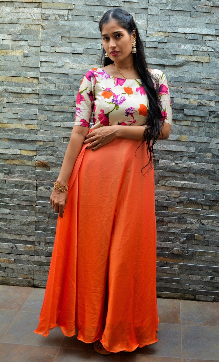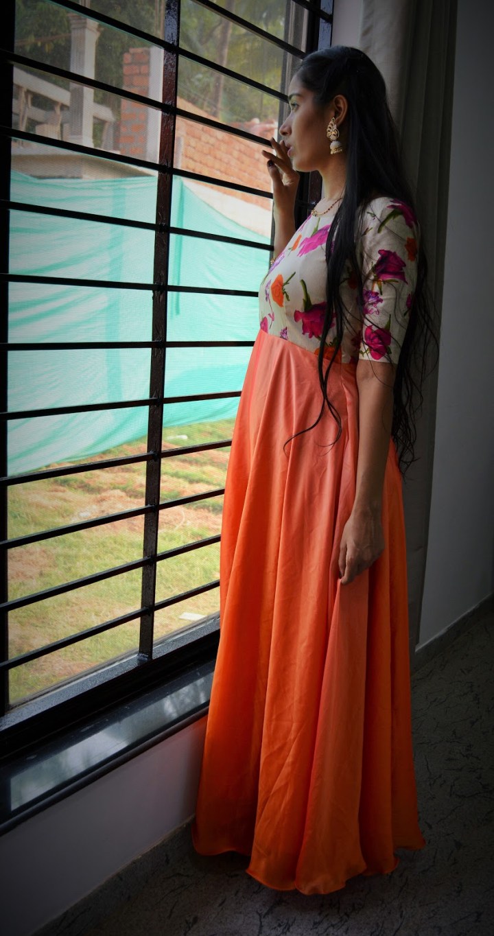 Well i decided to wear my newly stitched anarkali dress. I just love the so refreshing bright orange color which syncs with the theme of Yugadi or Gudi Padwa as orange symbolises the color of victory over evil and it’s also the color of Brahma Dhavja used in Gudi, mentioned in Brahma Purana because Lord Brahma had created the universe on this day. Besides, it’s simply the color of the spring-summer.😜