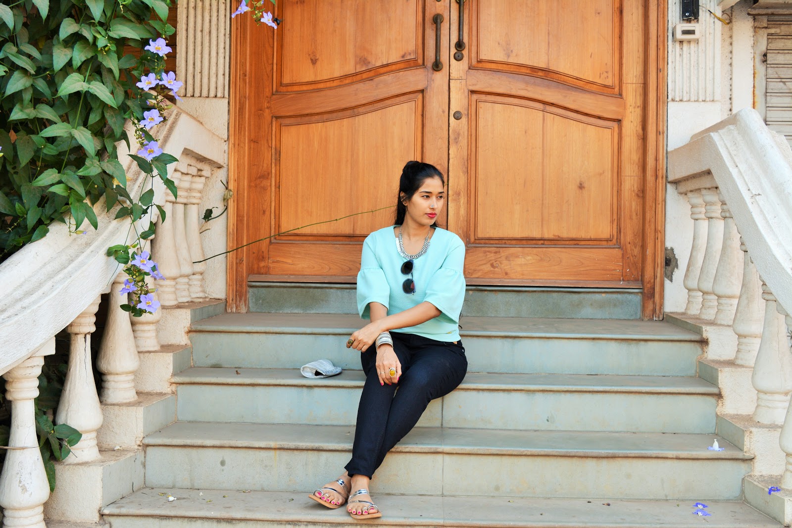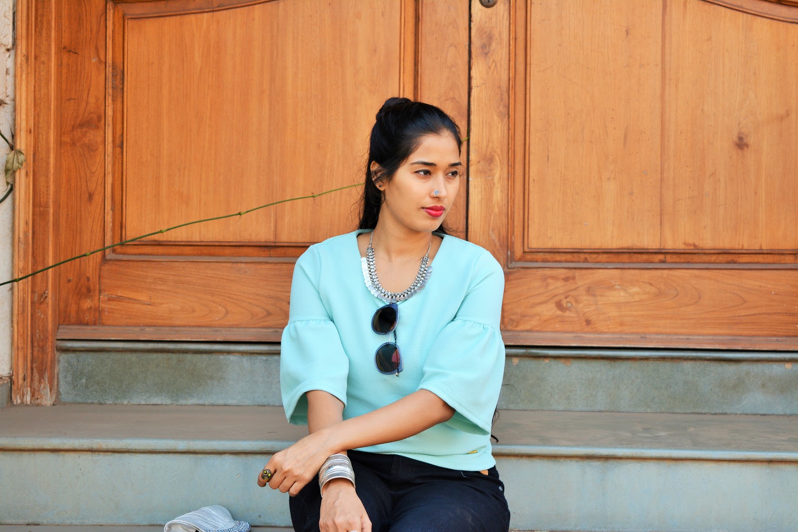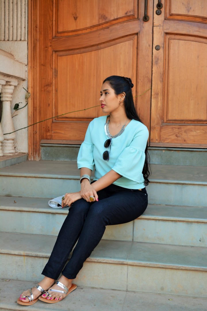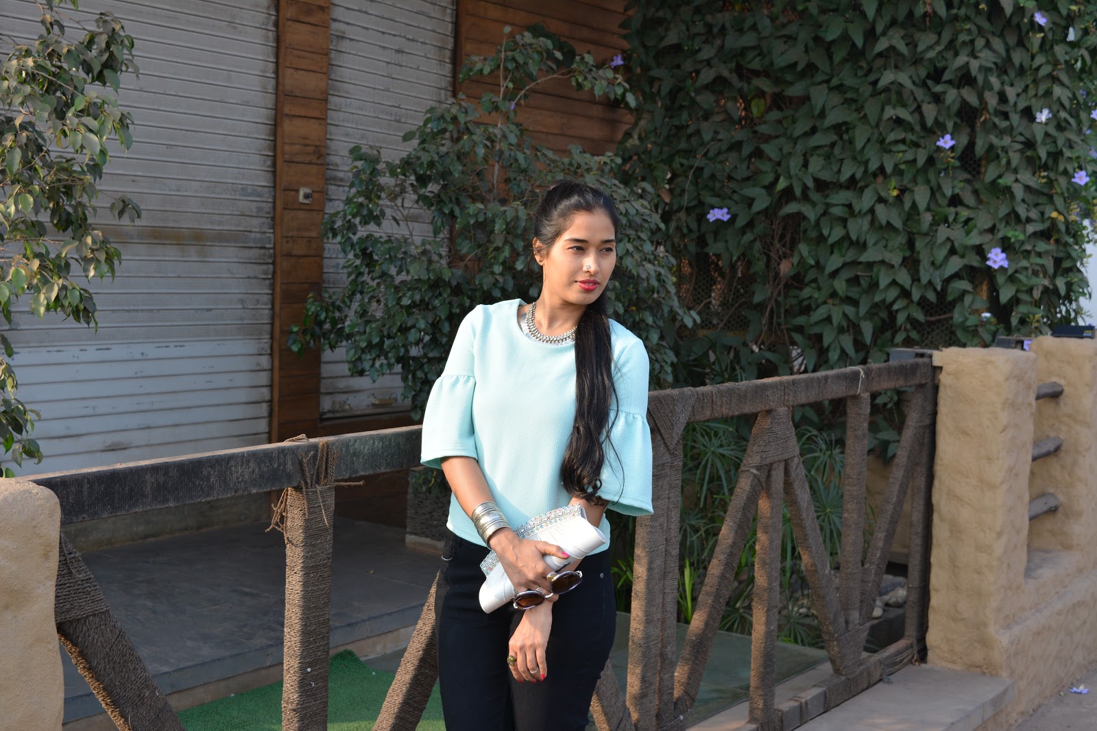 I paired up my classy top on black jeans and to perk up the style I accessorized with oxidized Nose ring, Neck piece and Bangle which gelled very beautifully with the top.