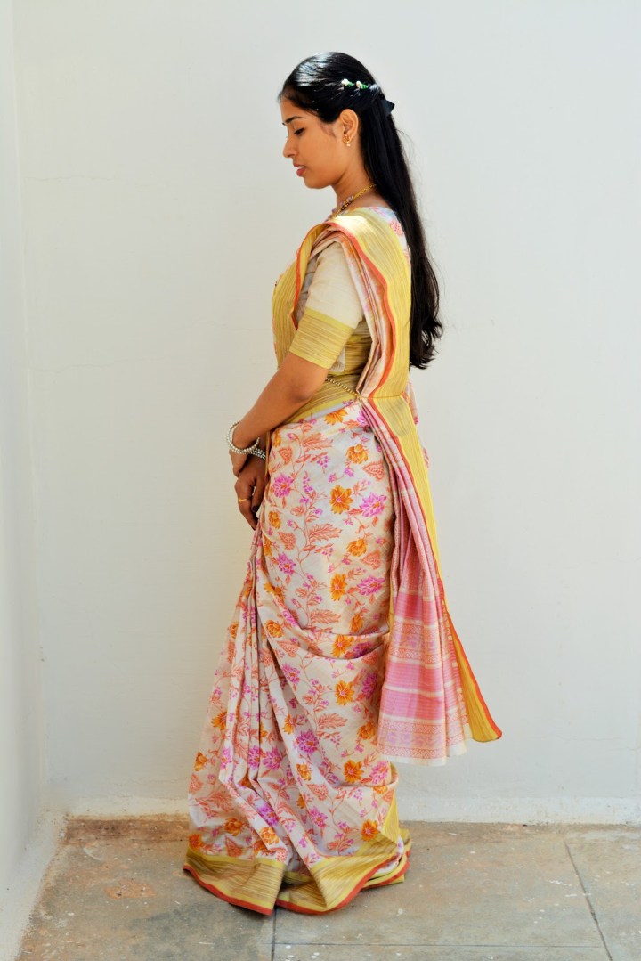This saree is very comfortable and elegant to wear plus the most important thing is that, it can be neatly pinned. I wore this during Ganesh Pooja.