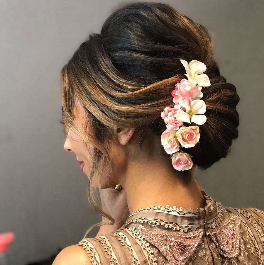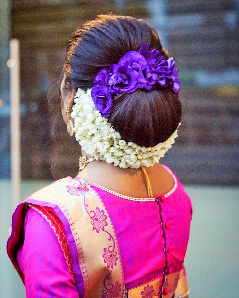 The first hairstyle that appears in mind when we think of donning a gajra on our hair is bun. Not only are buns easy to pull off, they also go with any attire you might possibly wear at a wedding or any other special occasions, be it saree, sharara, lehenga or a suit.