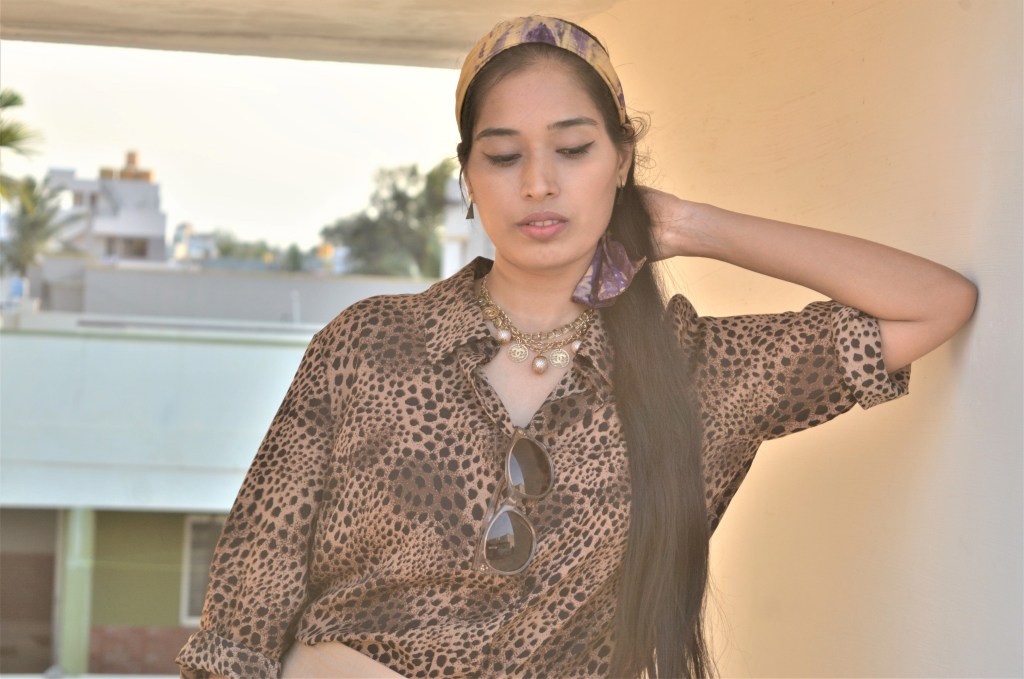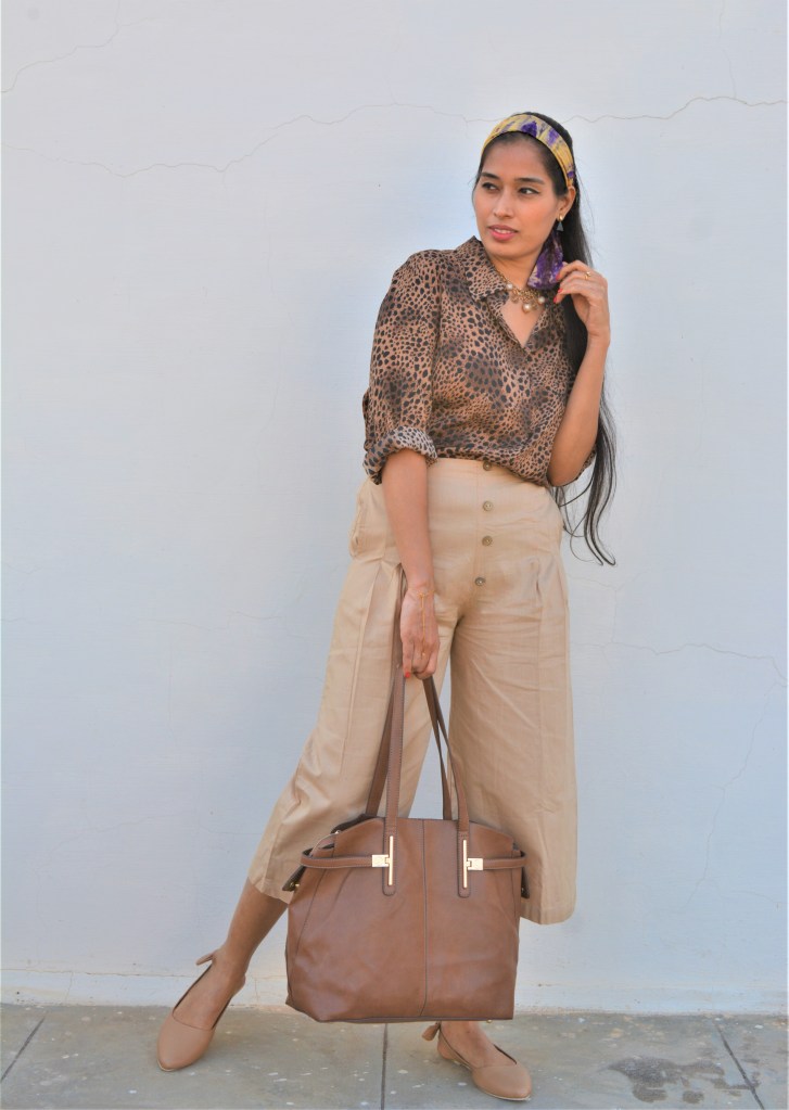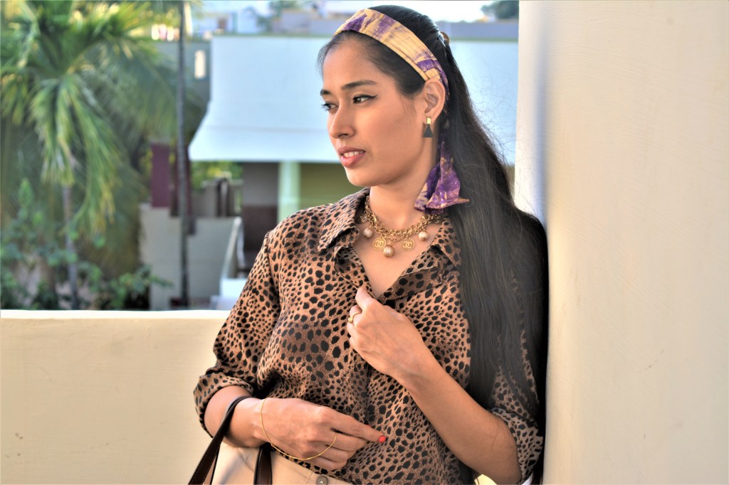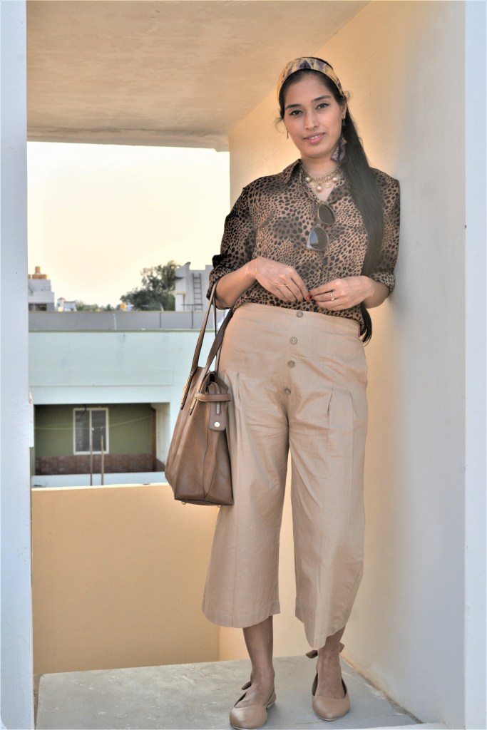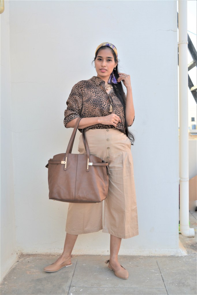 In my case, I teamed my leopard print polyester shirt with plain cotton culottes. Mixing different textures as well as including prints for my Monochrome attire, kind of added depth as well as dimension to my overall look which appeared more interesting.