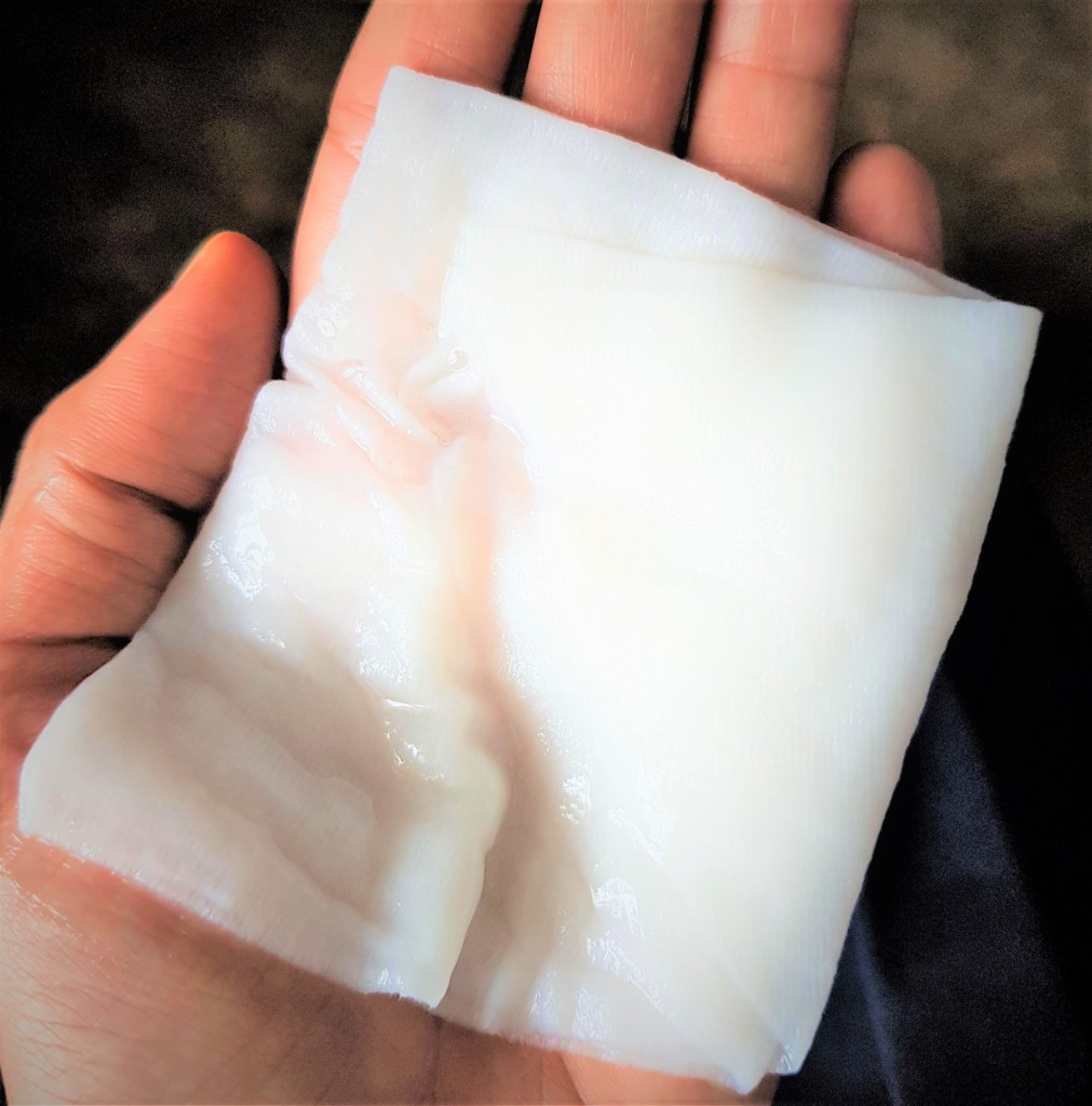 Loved the sheet mask essence as it was quite rich in consistency. Also the sheet/tissue used is quite thick and of good quality. I personally feel that thick sheets presses and holds the essence onto our face much better. The mask was also large enough, so I could get better coverage. Also it would fit all face shapes. It has a lovely scent that isn’t overpowering. However, there wasn’t enough leftover essence in the packet like other sheet masks so that I could end up using on my neck or on my arms/legs. But the sheet was thick and soaked the essence heavily and it didn’t drip.