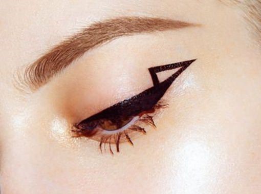 This eyeliner style resembles a cat-eye with with a lot more sharper tip. Its devoid of a curve. To acheive this look, draw a sharp point towards your brow & above the eyelashes.