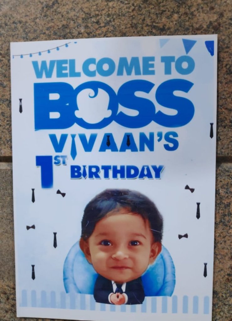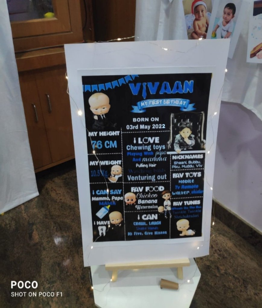 Having a photo booth was a FUNtastic way to get memorable pics clicked. I also got the chalkboard-themed milestone chart ready by simply editing and typing. Later, got this printed on A3 size gloss paper. Also, I got an amazing welcome banner printed on A4 size gloss paper through a simple editing process.