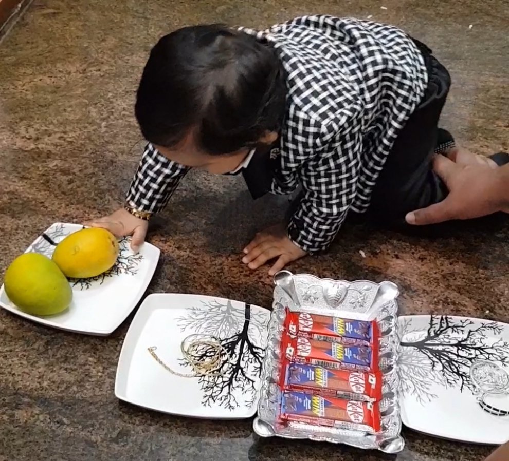 The teething ceremony is then followed by fun Selection Ceremony where a number of symbolic items like books and pens, money, gold, silver, flowers, fruits, and chocolates were kept in a row.