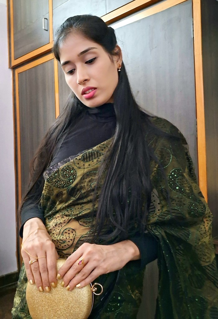 So, let’s dive into my effortless cozy party look created by donning this beautiful saree. The best thing about the saree is that it gracefully wears you the way you are, regardless of your size. This makes it an easy classic choice for any occasion.