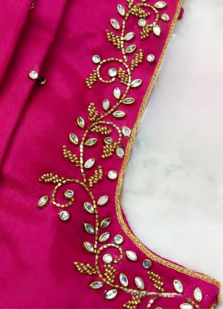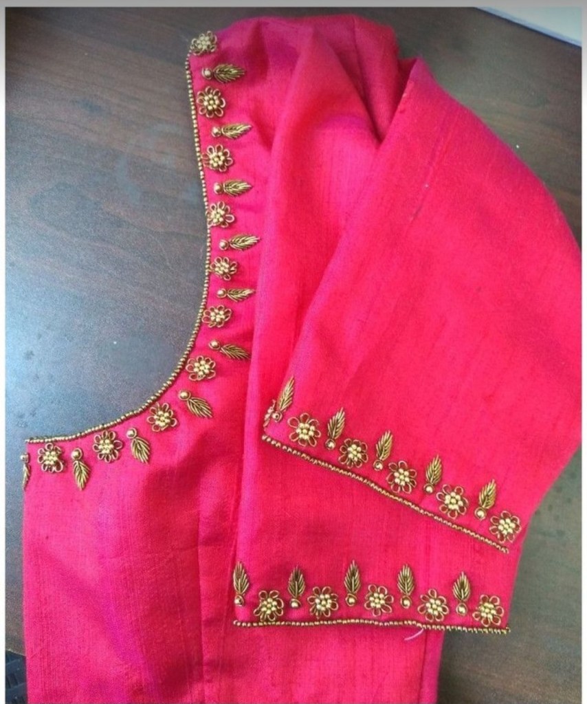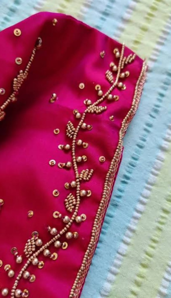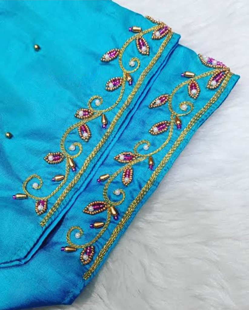 - Versatility: Suitable for various blouse fabrics such as silk, satin, cotton, and georgette, Aari work adapts to casual and formal wear.
