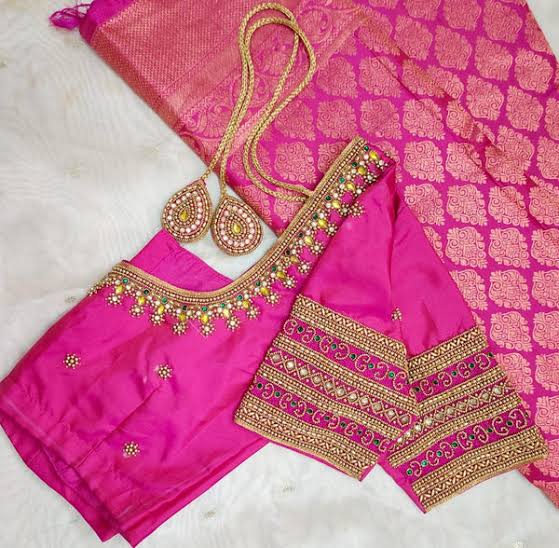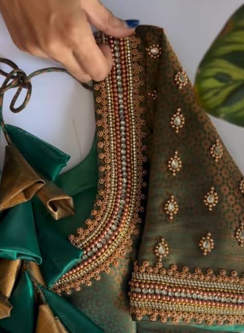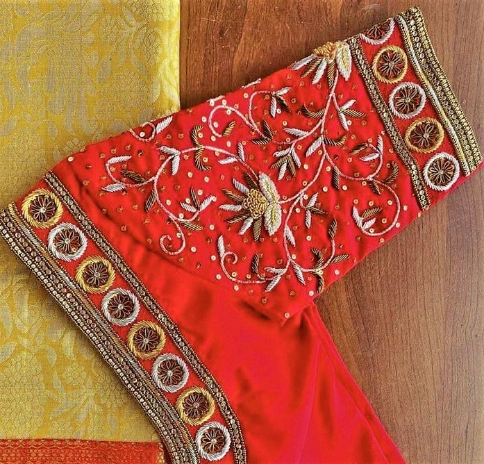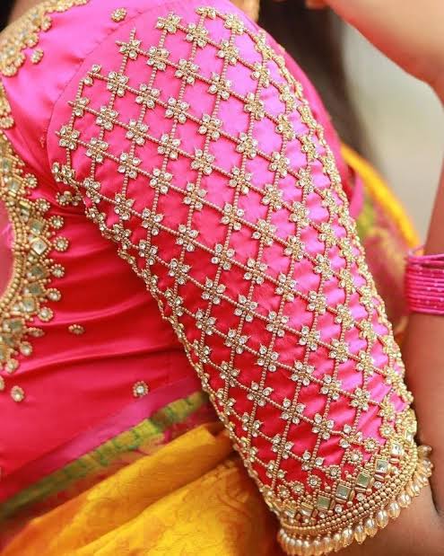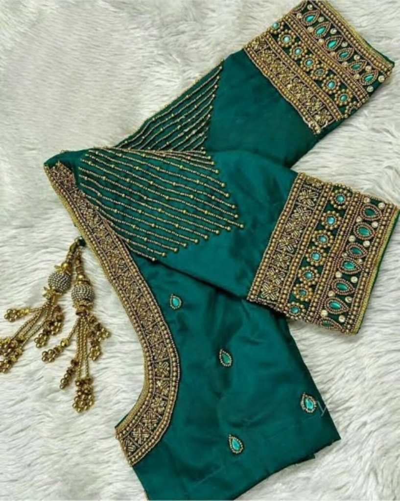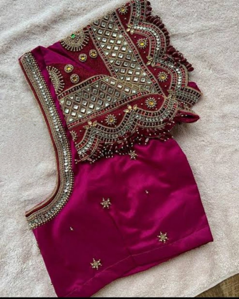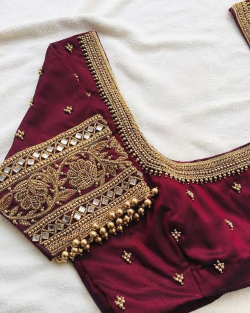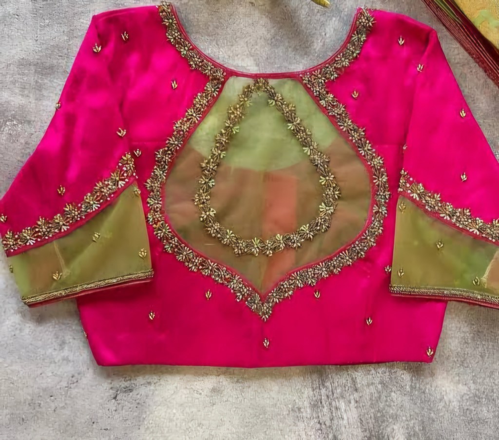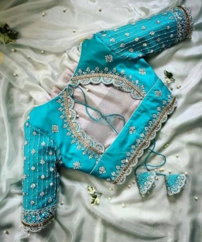 - Fabric Selection: Match the Aari work to the fabric of your blouse. Luxurious fabrics like silk and satin are ideal for intricate designs, while lighter materials can be adorned with more delicate patterns.