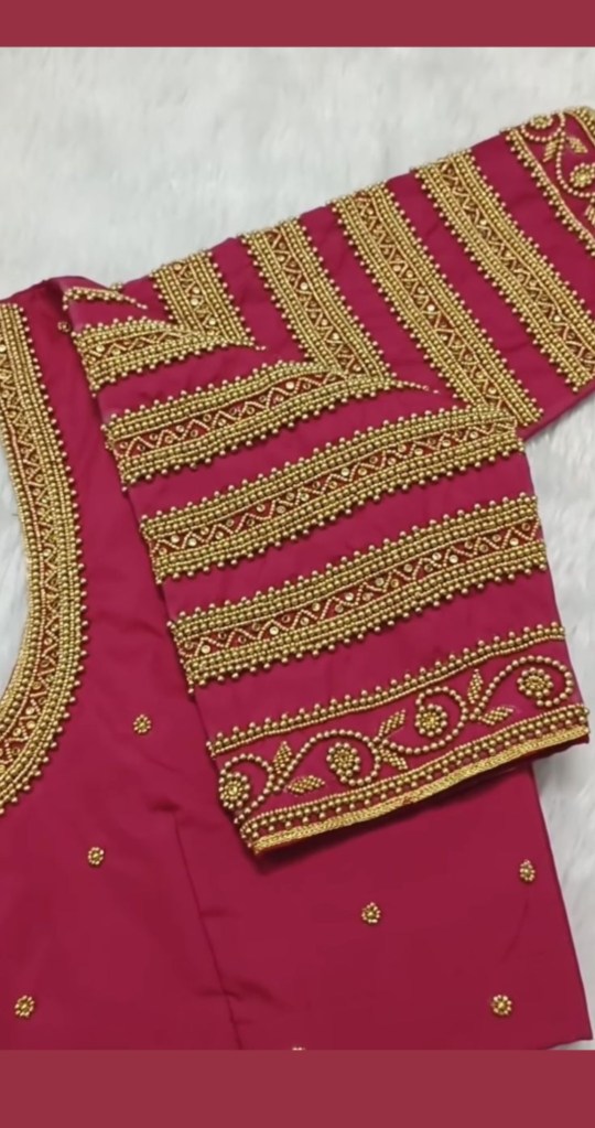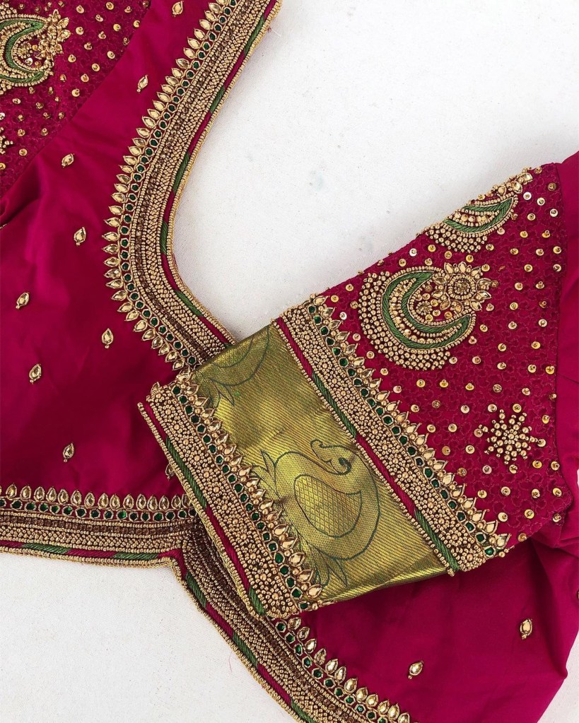 Aari work brings an artistic and elegant touch to bridal blouses, making them ideal for brides who want to shine on their wedding day. The detailed designs, luxurious appeal, and customization options ensure that your bridal blouse will stand out, reflecting your unique style and the occasion’s significance. By choosing Aari work, you embrace a rich tradition while adding timeless elegance to your bridal look.