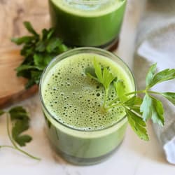 Blend fresh spinach, zucchini, 2 green apples, green cucumber, ½ ginger, and water. Strain, squeeze in lemon juice, and serve. Best consumed on an empty stomach or one hour before a meal.
